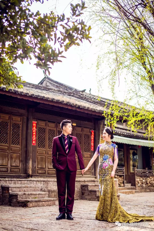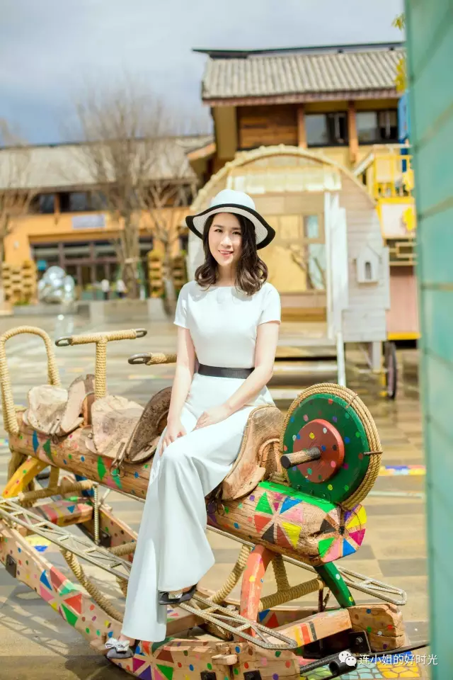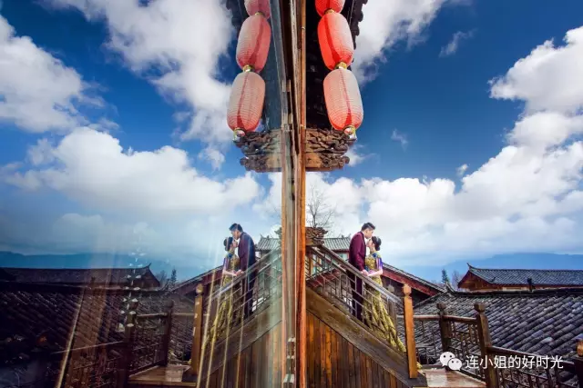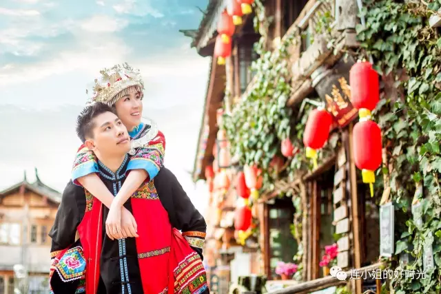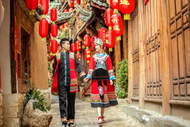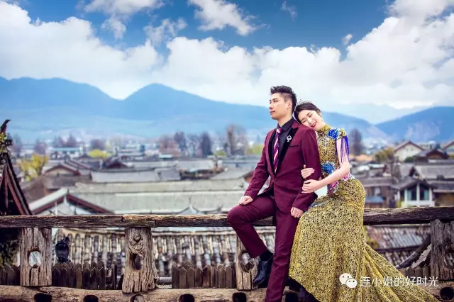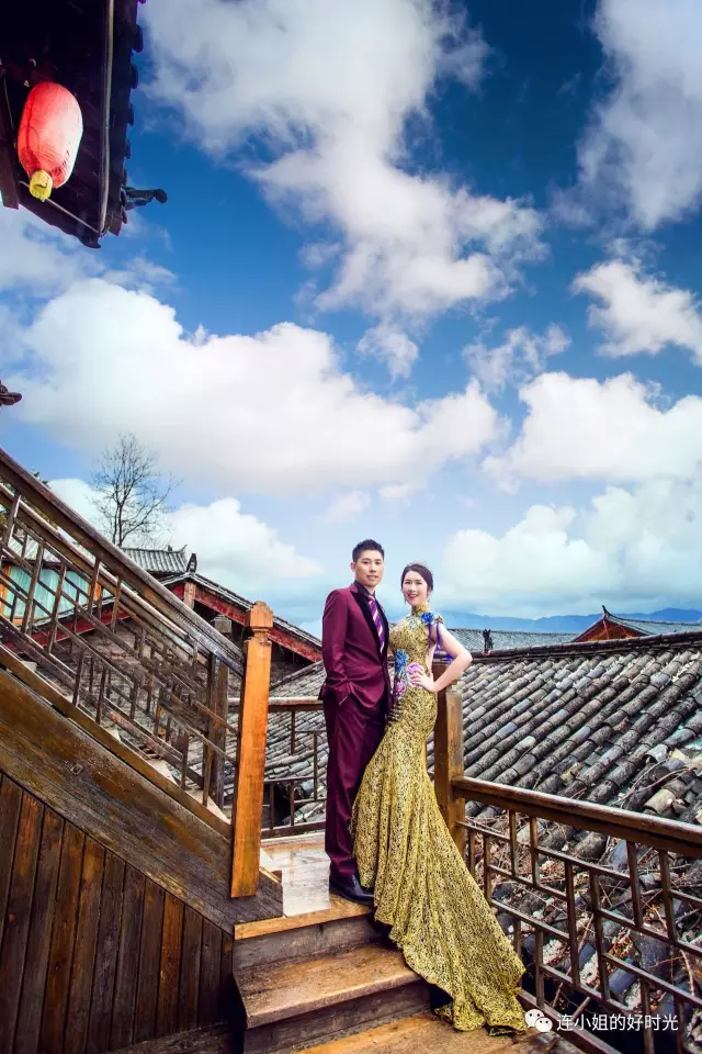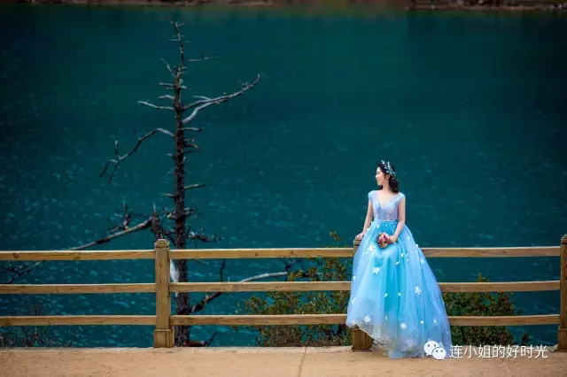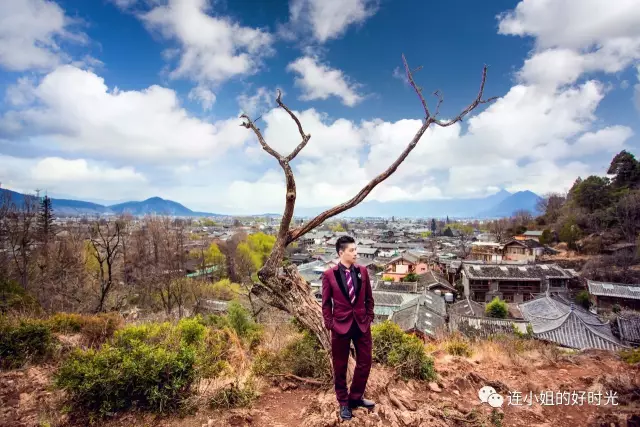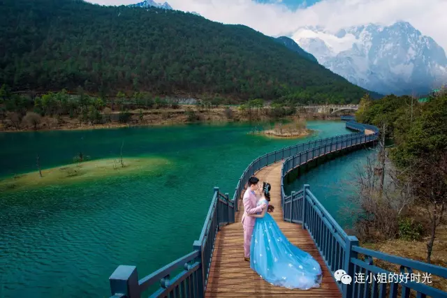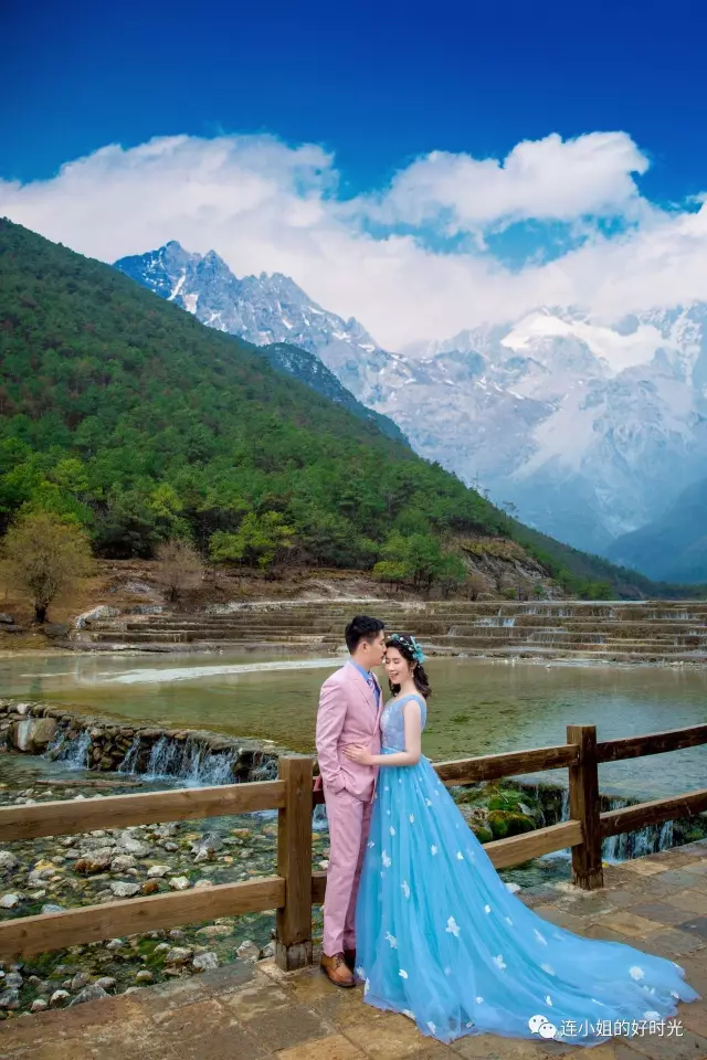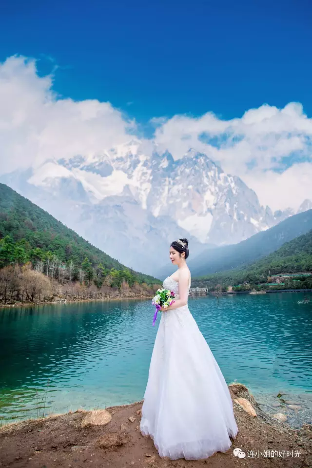 玉龙雪山上人家穿两层羽绒服我穿抹胸大露背什么的。