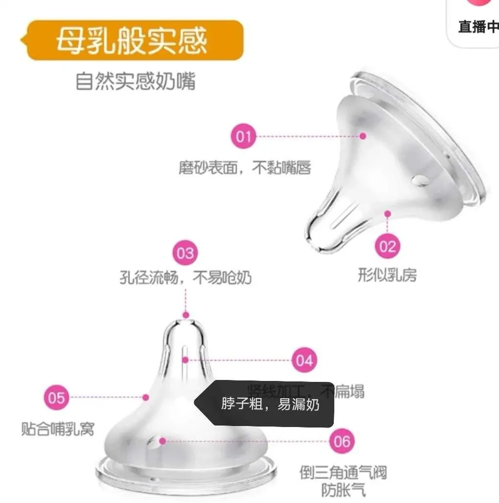 - 贝亲的奶嘴,脖子粗,宝宝吸着很容易漏奶。Hegen的奶嘴,脖子细,宝宝很好包裹,不会漏奶。