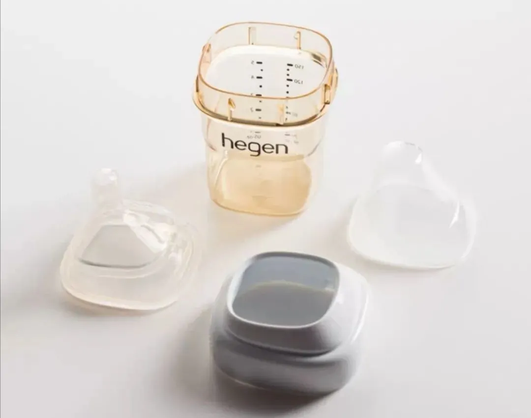 - 贝亲的奶嘴是拧到奶瓶上的,有螺纹,容易对不准,然后一晃奶瓶,奶全洒出来。Hegen的奶嘴是直接扣在奶瓶上的,非螺纹设计,往下一按就行,非常容易。